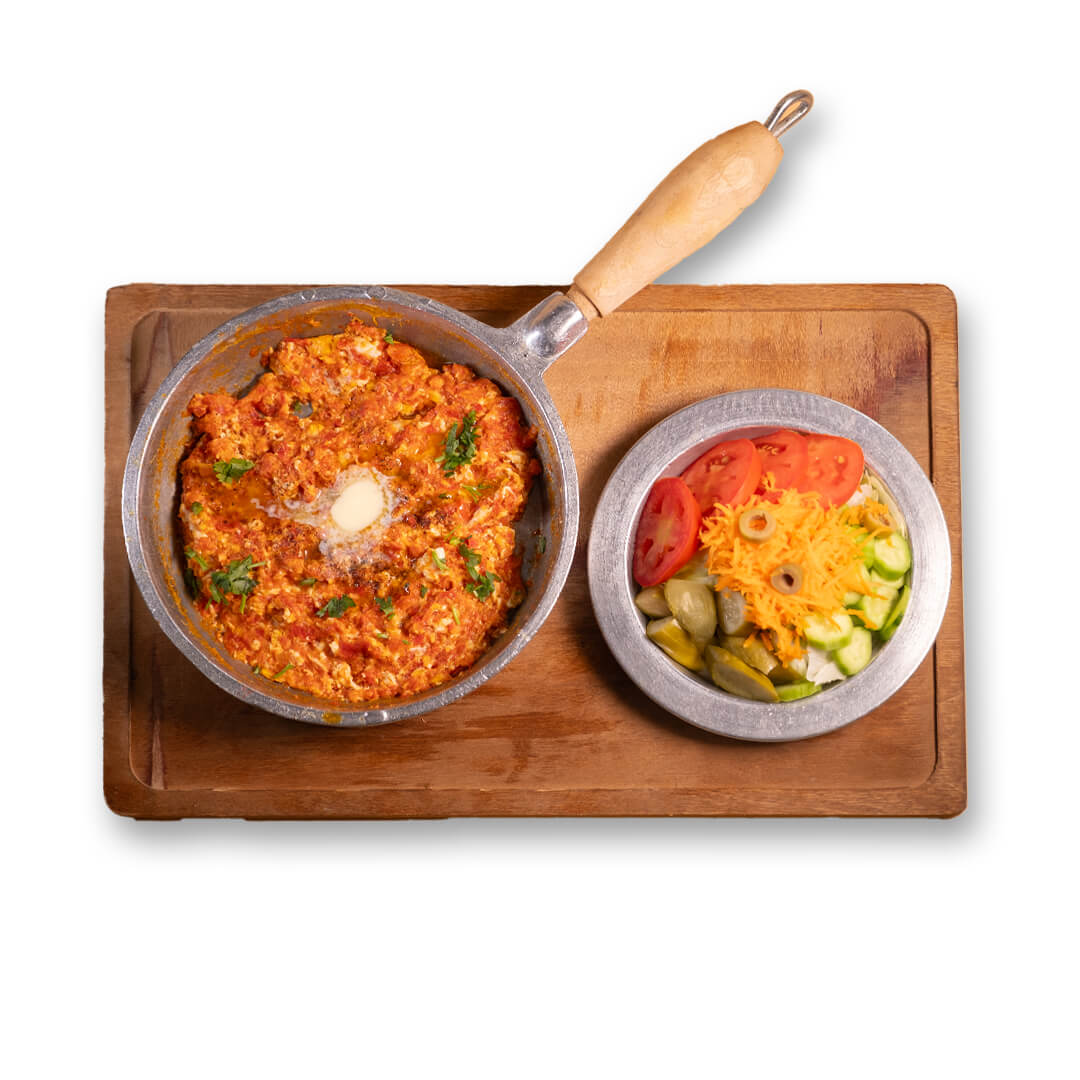 حجم غذا:2 عدد تخم مرغ + پوره گوجه + روغن+ادویه + نمک+ فلفل+ زردچوبه