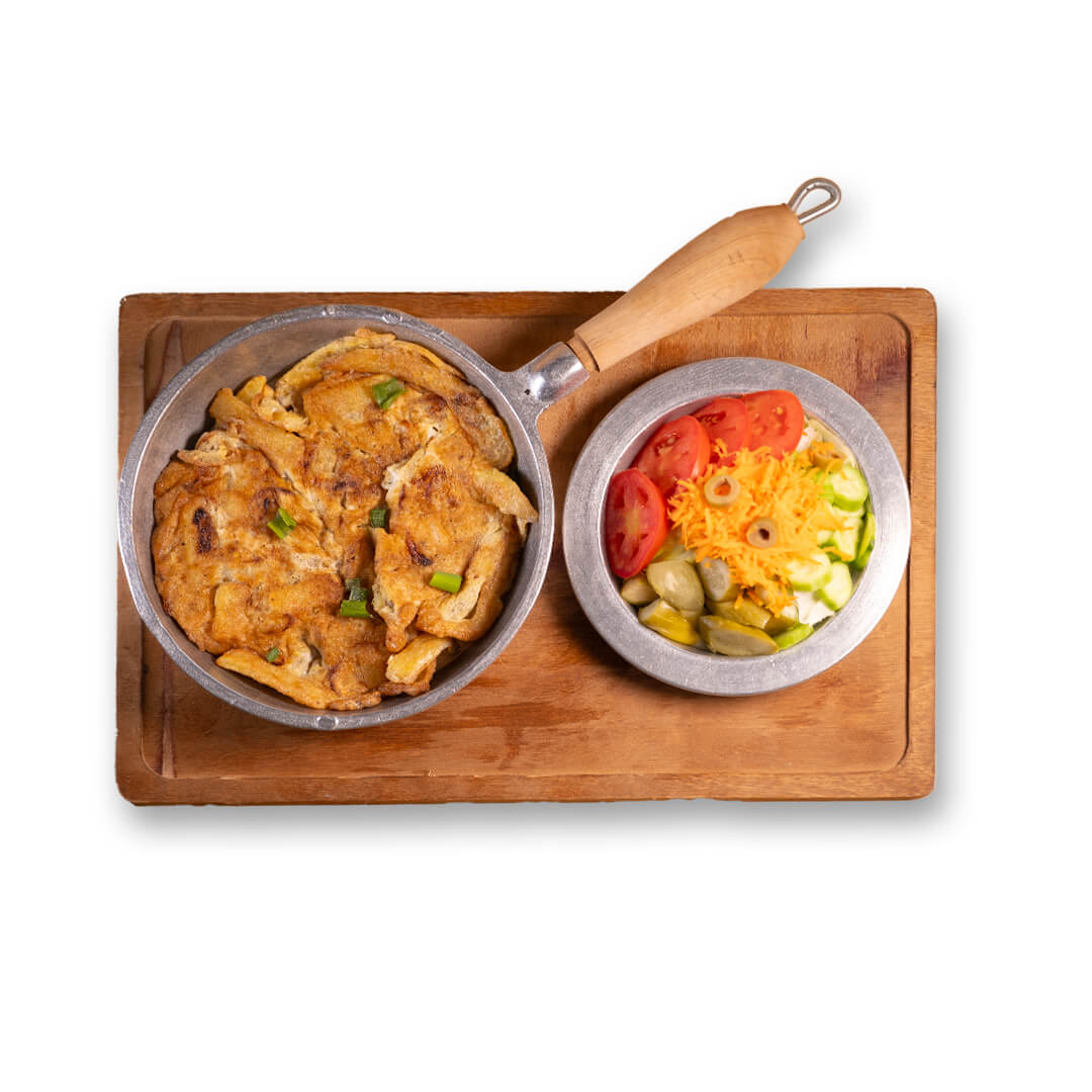 حجم غذا:2 عدد تخم مرغ+سیب زمینی+پیاز+ادویه(نمک+فلفل)