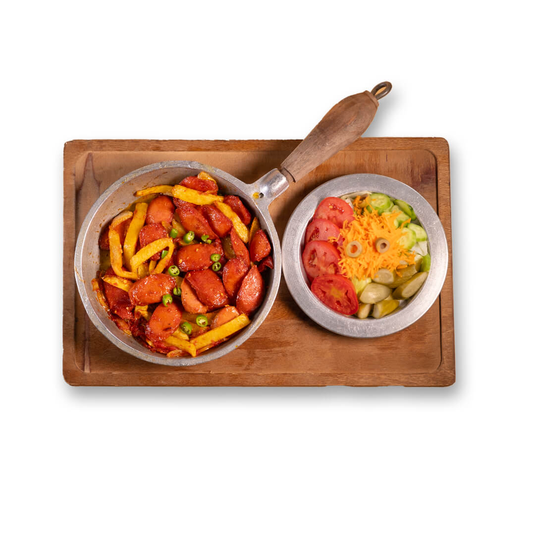 حجم غذا:سوسیس+سیب زمینی +فلفل
