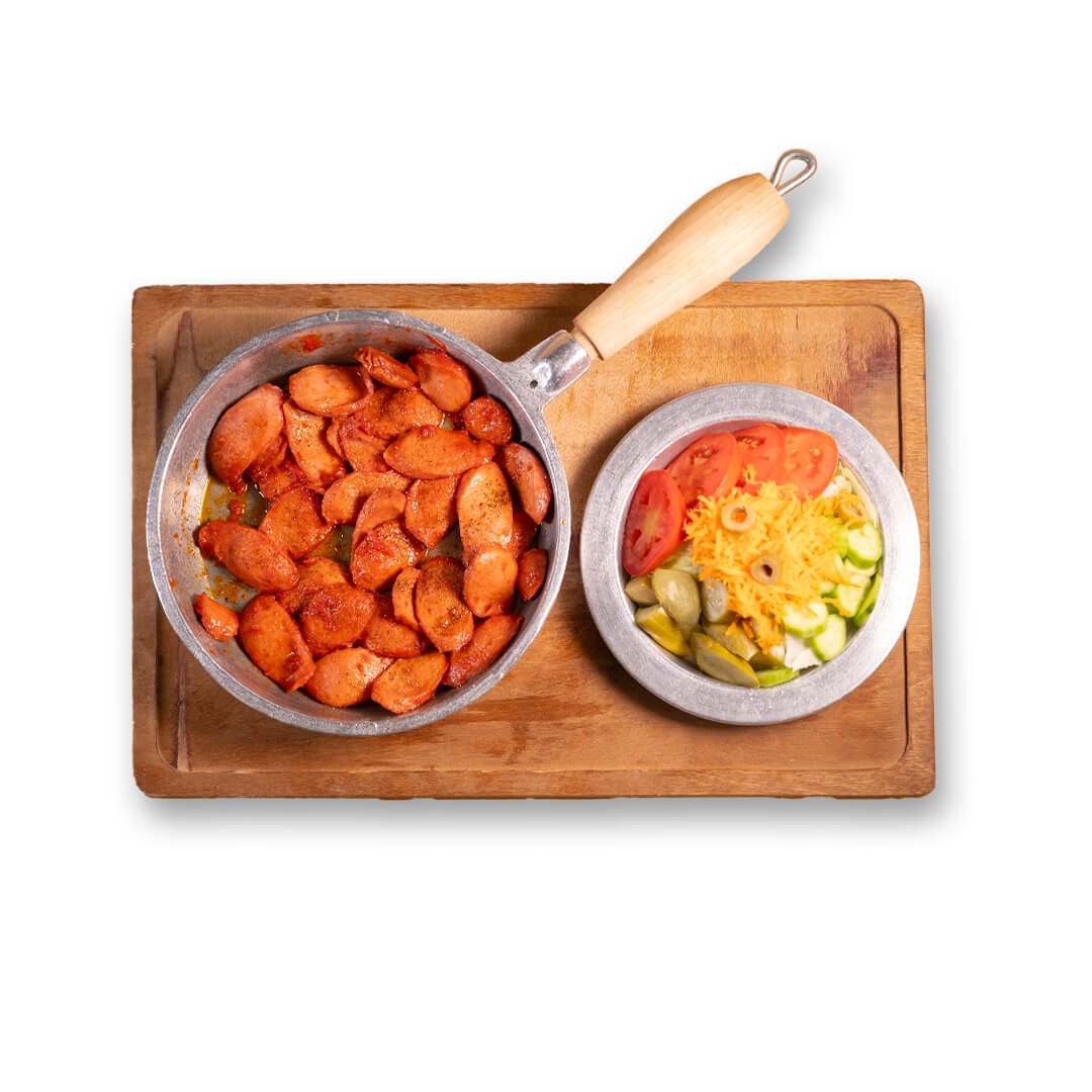 حجم غذا:2 عدد تخم مرغ+سوسیس+رب+ادویه(نمک+فلفل سیاه )